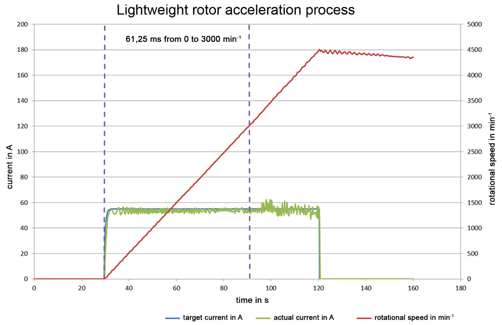 Die vielversprechenden Ergebnisse der Motorcharakteristikbestimmungen zeigten, dass das Gewicht der Rotorwelle um 25,1% reduziert werden konnte. Dies führt zu einer Reduzierung des Trägheitsmoments um 23% und einer Reduzierung der Beschleunigungszeit um 23,2%. Die Untersuchungen wurden bei 71,98 Nm und 3000 U/min durchgeführt. Darüber hinaus konnte die Permeabilität des Materials H13 durch eine Wärmebehandlung verbessert werden. So konnte die Permeabilität von 32 auf 480 erhöht und die Koerzitivkraft von 5600 A/m auf 1300 A/m reduziert werden. Dies führte zu einem offensichtlich verbesserten weichmagnetischen Verhalten.